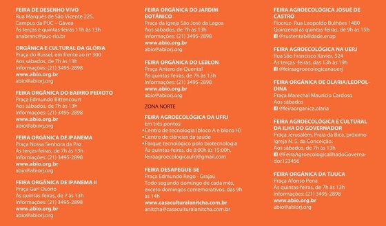 Encontre nas imagens abaixo feiras nas Zona Sul, Zona Oeste, Centro e Zona Norte do município do Rio e também na Região Metropolitana e nas Regiões Norte, Serrana, Serramar, Costa Verde e do Vale do Paraíba no Estado do Rio de Janeiro. Ainda você encontra feiras em cidades específicas, informações sobre os trabalhos de distribuição de alimentos dos movimentos MST, MPA e da Rede Ecológica outros grupos dedicadas para somar na luta pela soberania alimentar!
